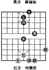 (图)形势,是1961年1月粤沪名手友谊赛上,由前辈棋手上海何顺安与广东蔡福如弈成的残局,轮红走。