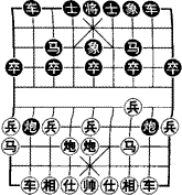 1.炮二平五马8进7 2.马二进三车9平8 3.车一平二马2进3 4.马八进九炮8进4