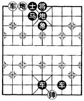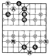 如图B,红方双车配合炮兵,闷杀胜。