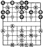 小结:本例红方横车压肋,黑方上右上本来就欠妥当,加之一味在左翼对攻,而红方七路马连蹦带跳,深入腹地塞“象眼”、瞄士角、最后终以连珠妙着,一气呵成胜局。