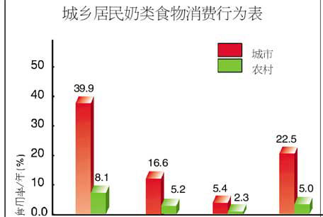 奶及奶制品在我国居民中的消费依然较低,鲜奶、酸奶、奶粉及奶酪的食用率分别为17.4%、10.1%、8.5%和3.2%。其中城市地区居民鲜奶及奶粉的食用率是农村地区居民的4倍多,男性居民奶粉及酸奶的食用率低于女性。