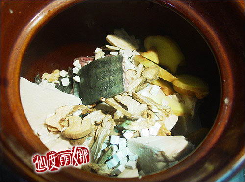 【煲法】水鱼买时让卖家收拾干净,回家再滚水略烫,甲的部分也要刷净。粉葛去皮,斩件,加水和加入云苓、白朮、老姜。大火待汤滚后,去除泡沫,收慢火,约煲四小时。