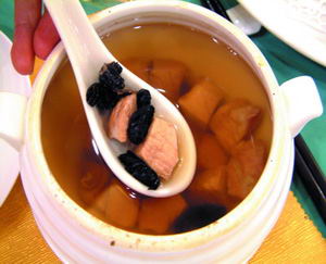汤方分析:冬虫草味甘性温,能补肺肾,止咳嗽;水鱼味性平,能益气补虚,滋阴养血。