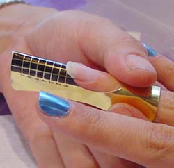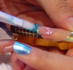 上模具。一会要用特殊的材料做水晶甲,所以要用模具塑型。