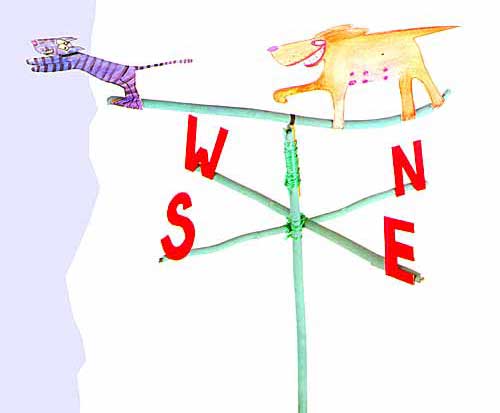 8.将电线插入圆珠笔,这样指示器就可以自由旋转了。用一个指南针测量一下N是不是在正确的方向,然后将风标安放在一个多雨的地点吧。