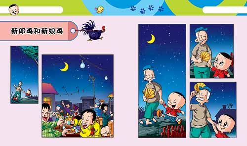 村子里有一户人家今天结婚,热闹得不得了,晚上在自己家的院子里办了二十桌喜酒。爷爷和大头儿子也被请去吃喜酒了,这会儿他们吃完回来,爷爷的脸吃得红彤彤,大头儿子的嘴巴吃得油光光。休 闲居 编 辑