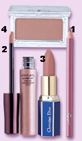 搭配和谐的腮红和口红增添眼部魅力!在比颧骨稍低的位置,从耳朵前开始,斜着向下扫上腮红,面孔会有干练感。营造适度的张弛感,用比口红色浓一些的唇线笔画唇线,涂口红后,再涂米色唇彩。