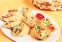 制作:先将甘蓝菜洗净、切丝、备用;胡萝卜洗净、去皮、切丝、备用;绿豆芽洗净,豆干洗净、切丝、备用;将所有准备好的原料用热水烫熟,然后加少许精盐和香油拌匀;将拌好的原料均匀放在豆皮上,卷起,用中小火煎至表皮金黄;待放凉后切成小卷,摆入盘中即可食用。