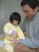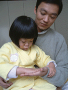 爸爸和宝宝各自把手藏在身后,口中念着“剪子、铁锤、布”,在念到“布”时伸出手,决定彼此的胜负。这个简单的猜拳方式输赢性很强,爸爸可仔细观察宝宝,可以故意输几局给宝宝,增加宝宝的乐趣。