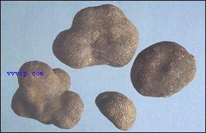 【商品名】:雷丸。以个大饱满、质坚、外表黑褐色、断面白色者为佳。