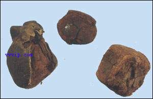 印度牛黄:又称印度黄。为产于印度者。为进口牛黄之一。品质不及国产优良。