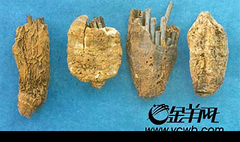 2.人工制作的虫草,是用石膏粉或面粉掺胶用模型压制而成,表面黄色或棕黄色,足8对均匀排列,脊部横纹粗排列整齐,子座是短褐色插入,质硬,断面角质状,嚼之有面粉石膏味。