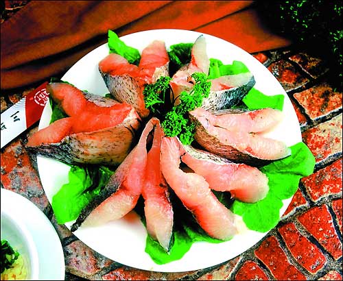 【制作】 1、鱼尾去鳞,洗干净后抹干水分,加入腌料腌十分钟左右,烧热少油,爆香姜片,再把鱼尾煎至两面黄。