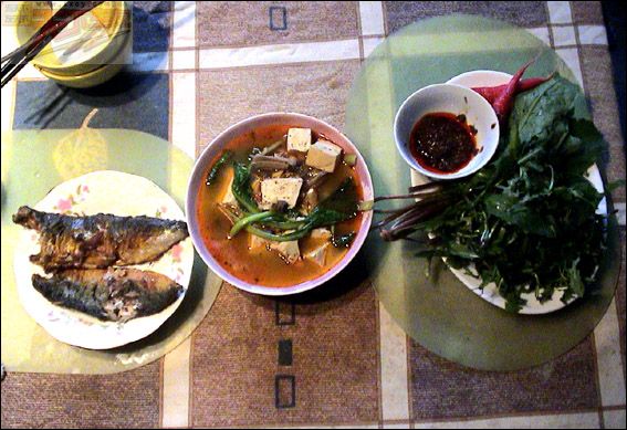 【 原 料 】豆腐 200 克,海带 50 克,虾子 10 克,葱、姜末 5 克,精盐 2 克,清汤 400 克,花生油 30 克。