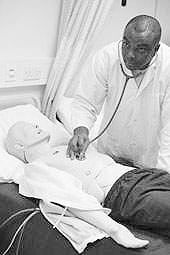 能说话、会喘气,甚至还能呻吟和流血,这是英国科学家日前研制出的一种具有真人大小的“模拟病人”,利用这一逼真的人体模型,接受培训的医学专业学生能够亲身感受并获得抽血、打点滴等专业技能,还能看到病人对药物的反应。