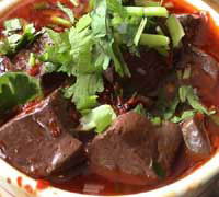 温馨提示:食用动物血无论烧、煮一定要氽透。烹调时应配有葱、姜、辣椒等佐料用以去味,另外也不宜单独烹饪。动物血不宜食用过多,以免增中体内的胆固醇,高胆固醇血症、肝病、高血压和冠心病患者应少食。