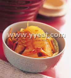 (2)将调味料(2)加入上述材料中腌制12小时,期间必须多次翻动使其入味,最后放入容器冷藏约1~2天入味,食用前再取出即可,约可保存1~2週。