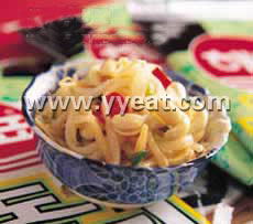 (3)将调味料(2)与材料(2)拌匀后,拌入黄豆芽中搅拌均匀,即可置于容器中冷藏腌1天以上待入味即可食用,约可保存3天。