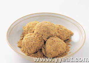 (2)把小豆泡在水里去皮洗净﹐放在蒸锅里蒸后﹐热的时候放白糖﹑酱油﹑胡椒粉﹑桂皮粉用棒槌压碎调味后﹐不放油炒而用筛子筛好。