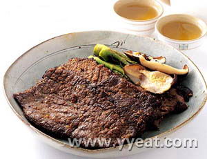 (4)把放30分左右的肉放在烤热的烤架儿上烤匀。最好在强火中烤匀。