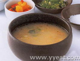 (5)把肉片放在海碗里﹐把汤烧热后浇上。再放上切小的葱和盐﹐胡椒面﹐辣椒面。