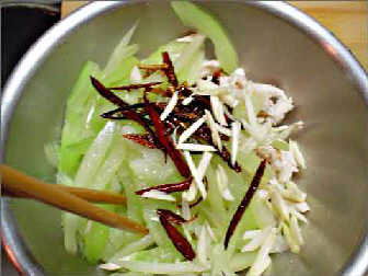 只需西芹一把(多少随意)、花生油少许、香油少许、盐少许、冰箱一个、锅一个,将西芹的叶子摘去将锅内放上水,烧开放入花生油,将西芹放入,无需煮太久,三四分钟即可。将西芹捞出放入冷水中过冷河,将西芹去皮(煮过的西芹很好剥皮的),将剥好皮的西芹切段(不可切太短),装盘撒上食盐少许拌匀,倒入香油少许再拌匀这凉拌西芹既青翠可人又脆口爽人,好一个开胃菜。