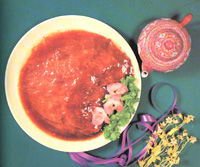 (2)用葱姜米舱锅,加入高汤、调料,再加入鱼翅,用温火煨,待汤汁浓醇 时转旺火,加入水萎粉勾芡,淋上三合油翻锅即成。