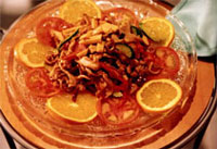 2、 玉兰片、黄瓜洗净切片、红辣椒洗净切丝;