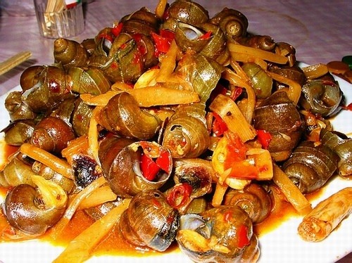 吃螺的方法:要有一点技巧,并一点也不文雅,用食指和姆指把螺的尾部放进嘴边,先吸出其汁,顺带一吮,把螺尾肉用力一拉,这叫“欲擒故纵”,再把螺体转过来,把头部放入唇里用力一吸,整个螺肉便丢进口里,细细品味,味蕾的作用充分发挥出来,那鲜美,那甘香,令人总有品不足、尝不够似的。一家人围坐在一起品尝着,各人发出“滋滋”的响声,俗称“亲嘴”。如同奏起一首独特的交响曲,那种美妙的乐趣,令人回味无穷。