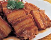 五花肉一定要选三层肉,其肉质紧实而且呈四方块状的才好,入油炸前用牙签在肉皮上扎洞,这样可将油脂抽除,吃起来不会油腻。