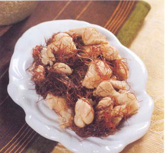 此菜肴含有维生素K、谷固醇、木聚糖、有机酸等,有促进胆汁分泌、增加血中凝血胶原和加速血液凝固等作用,可有效治疗月经不调。