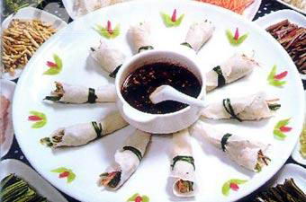 丝娃娃很便宜,粉丝、绿豆芽、莴笋丝、海带丝、萝卜丝以及油酥黄豆等都可以是丝娃娃的馅。而蘸水也很讲究,酱油、食醋、辣椒、香葱、味精等配制而成的调料,格外鲜香,使外软里脆的丝娃娃更加可口。丝娃娃在贵州是在几近失传中保留下来的,值得庆幸的是,我们在北京也能吃到这种黔味传统小吃。素菜脆嫩,酸辣爽口,在入口的瞬间一股清凉,令人无比舒畅。