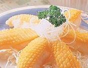 2.为使虾泥固定在鱿鱼上,镶虾泥前先拍少许淀粉或面粉,较不易脱落。