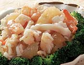 ①虾仁洗净;海参洗净,切成大块;鱿鱼洗净,切成条;西兰花掰成小瓣,洗净,放入沸水中焯一下,捞出备用。