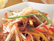 做法: ①材料全部切丝备用。 ②用2大匙油先爆香蒜末、姜丝,再放入其他材料同炒,并加调味料炒至入味即可。
