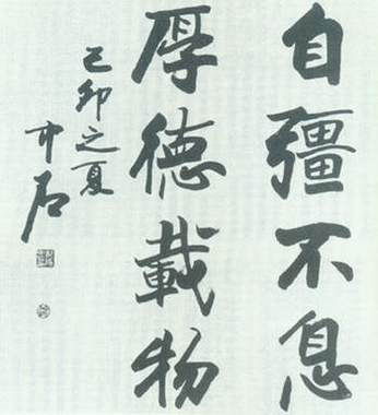 他生长于山东-中国一个有着深厚的文化传统的地区,考到北京,先后在辅仁大学、北京大学攻读中国逻辑史。毕业以后,他第一次“不务正业”,被分配到中学,结果中学的各门课程几乎都教过。期间他潜心研究了中国语文课程的改革后,提出了一套很见成效的方案。于是调入北京师范学院。在大学的舞台里,他在书法艺术和中国文化方面的积累,得到了重视,于是在有关主管部门和学校各方面的支持下,从1985年起至1993年,建立起从博士、硕士、本科到专科的各层次高等书法教育系统,并于1998年起至1993年,建立起从博士后,完成了首都师范大学美术学(书法教育)学科的建设工程。这一工程的完成,标志着作为中国文化重要组成部分的中国书法艺术正式加入了中国现代高等教育体制。从大学毕业后,他就几乎再也没有时间来专心研究自己的 “本行”,包括他从小就非常喜爱的中国另几门传统艺术-京剧、国画以及诗词曲联。 然而,结果是我们都已经知道了他不仅成为了书法文化研究的专家、著名书法家,而且在自己的专业逻辑史方面仍然有所建树,对于京剧、国画、诗词曲联各门艺术也都是专家。看这个结果,所谓“不务正业”,就无从说起了。 为什么?因为他始终走在学问之道上,从来也没有离开过中国文化研究这个领域。只 是,在这个领域里,他比一般人踏过的地方多一些,作出贡献的方面多一些:青年时代,他一边读大学,一边追随奚啸伯先生学习京剧,那时已经开始了对京剧的理论研究。此后的几十年,他对京剧的音韵、唱腔、表演、流派、历史乃至京剧的继承发展问 题,都作过探讨; 中学语文教改方案,看起来似乎只是一个学科教学法问题,然而他的方案,浓缩了他对于中国文字、语文特色的深刻体悟,并经过了严格的逻辑推演,已经俨然自成体系; 他曾经独立完成过一部《中国逻辑史》,可惜遗失了,但即便如此,他仍然没有放弃,后来参与了国家项目《中国逻辑史》,主编了中国逻辑函大教材《逻辑》;对于中国艺术,他多能并善:国画承齐派,笔墨生机活泼,构图富于情趣,深得传统文人画的意味;诗词曲联创作,硕果累累,既有应时颂世的宏篇巨构,也有纪游泳景的巧思佳作;至于京剧表演艺术,更深得奚派的神韵,早已享誉剧坛。能够在上述的某一方面取得这样的成就,已非易事,更何况要博综兼优。但欧阳先生从来也没有感觉有什么不对。他最近写作的一幅书法作品说: “昊天无私覆,空极莫不容”。他自称喜欢“见异思迁”,而实际上是始终保持着对于学问尤其是中国文化的深厚感情。因此他总能充分调动自己的智慧, “用智慧夺取时间”,找到各学科的关键,整理出头绪,迅速有效地提出解决方案。更重要的是,随着对各学科研究的深入,他自幼就已经打下的坚实的中国文化修养逐渐发挥重要作用,并得到持续的深化,各学科之间的轸域逐渐汇合,聚拢为一个有机的整体。如是,欧阳先生所关注的,已经不再是各自独立的“中国逻辑史”、 “书学”、“京 剧”、“诗词曲联”、“语文教学”……,而是整个的“中国文化”了。当书法的博士教育开始时,他在听取了国内专家的意见后,确定以“中国文化的历史与理论”为考试的第一科目:当2000年首都师范大学成立系级编制的中国书法方面的研究所时,他坚持应当命名为“中国书法文化研究所”;在首都师范大学中国书法文化研究所的教学、科研体系内,“中国文化”是最重要的科目之一,北京市九五社科规划项目《书法与中国文化》即是这一思想的结晶。反过来,以如此全面的文化研究为依托,欧阳先生在中国书法艺术上的造诣,超越了具体的技巧层次,而进入了“道”的探求。他提倡,“作字行文、文以载道、以书焕彩、赋以生机”。他作书,各体兼善,尤其行草书深入东晋堂奥,得潇洒灵动、婀娜刚健之致,享誉国内外。他的作品,强调书示的形式美与文辞的内容美有机结合,审时度势,应事面作,切题以成,“文心书面”,力求在整体意境上表现出中国文化的特有气质与风度。欣赏者不仅能从点划、布白、墨彩中观赏到中国书示艺术以简驭繁、虚实相成的美,而且可以体悟到中国文化包容博大的内涵。例如,“天人合一”的古老观念。《咏泰山诗》同样是这样的佳作。而“自强不息,厚德载物”,书写于中国书法研究所里,有所训的性质,则取中国儒家思想之刚健有为以图奋勉之效。欧阳先生已是73高龄,但是他仍不停步。正如他一直以来所作的一样,徜徉于中国文化的浩博天地里,以博大的胸怀,用“空极莫不容”的态度,继续研究着、探索着。而且,他还希望能够把薪火尽快地传下去,因此他至今仍然主持着中国书示文化研究所的工作,指导着多名博士研究生,他想带动年轻人迅速成长,光大这门古老艺术,推动中国文化的复兴。