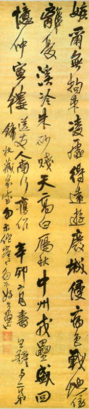 看惯了自文徵明乃至董其昌那些明智而宁静的大人技艺的人们,一见到王铎的作品,就好像正在享受悦耳的轻音乐一般。戴明皋在《王铎草书诗卷跋》中说:“元章(米芾)狂草尤讲法,觉斯则全讲势,魏晋之风轨扫地矣,然风樯阵马,殊快人意,魄力之大,非赵、董辈所能及也。”