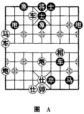 如图A,选自象棋古谱《适清雅趣》第35局,名《井中投辖》。局中红方弃双车,为最终马后炮取胜辅平道路。