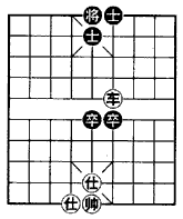 (图)形势,是单车对双卒双士的巧胜局。黑6路卒如在4路遮脸,即为正和残局。