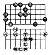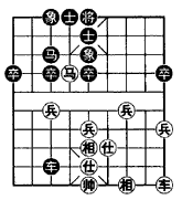 黑将为了逃避红马的攻击,转换士架花费步数,红趁机吃双卒,取得多兵优势。