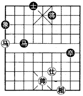 此类局势,马卒方取胜机会很多,此局红以妙手巧和。选自1965年全国锦标赛,河北刘殿中与上海胡荣华的对局。(图)形势,黑方先行。