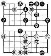 如图形势,红方胡荣华双车一炮已冲破了黑方的防守阵地,但由于右车一时不能调动到左路上去,难于构成杀势,而黑方的沉底炮即刻就要平边路展开反击。争取时间就是胜利,红方大胆挥炮打士,打破了黑方的防守平衡,终于取得了胜势。红方先行: