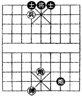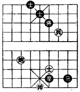 注:①老兵在残局中也能放出异彩。平兵撵将回宫是谋胜的唯一途径。