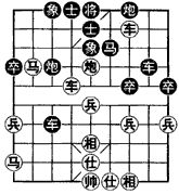 破黑方的城池?红方果断地弃炮换士,使黑方露出防守的破绽,从而扩大了优势。红方先行: