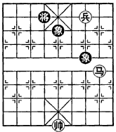 双象无士,马方有兵进宫心或帅、兵分控两肋等多种胜法,故双象无法守和马低兵。本局为兵定宫心胜法。
