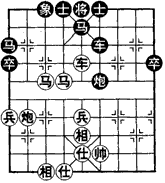 如图,是1988年全国个人赛北京谢思明对福建林秀琴弈完第37回合时的形势。由顺炮直车布局演变而成。观枰,黑车炮伏有抽将手段,现在轮红方走子,突出妙手,马入中宫入局,精妙绝伦。着法如下: