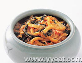 (4)在干萝卜条﹑辣椒叶﹑白菜里放糯米浆煳﹐辣椒面﹑葱﹑蒜﹑酱鲥鱼拌后撒整芝麻。休 闲 居编 辑