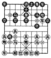 [小结]红方平炮通车式,均衡出动子力,意在稳步进取。在如图局面下,(甲)变红方冲兵,虽能保持复杂的形势,但黑方棋形坚实有力,可通过防御反击,获得不错的战斗机会;(乙)