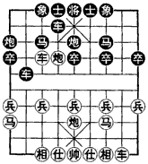 如图形势,红方杨官?U为 了求稳定的先手局势,先上右士,把阵势防守得非常牢固,然后再打车进兵,有力地控制了形势,红方先行: