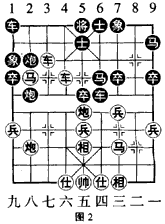 图2是1929年有 “国手”之称的南京万启有与北平那健庭二人所弈成的盘面。黑卒正在驱捉红方中炮,力图拔去病根,红如炮五平四,黑可马6退7,红虽仍持先手,但未见必胜。此时,只见红方退车,突出奇兵: